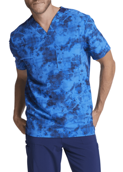 Dk607 Dickies Dynamix Men S Get Down Grid It V Neck Print Scrub Top Jens Scrubs